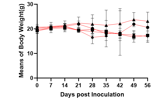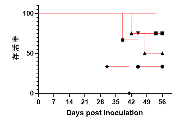 分别将来源于5个不同供体的huPBMC注射到NPG小鼠中,注射后2周即产生高水平的hCD45+细胞,并可维持至8周左右;分析Hu-PBMC-NPG免疫重建小鼠的存活时间,发现一个月左右陆续出现死亡;Hu-PBMC-NPG小鼠会随着时间推移产生GvHD,缩短了Hu-PBMC-NPG小鼠的使用窗口期。
