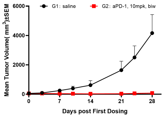 图5. PD-1抗体药在Hu-PBMC重建后的DKO-NPG小鼠中药效评价