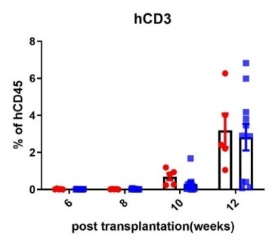 图2. IL15-NPG小鼠移植CD34+细胞后外周血检测结果