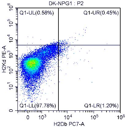 图1. NPG小鼠与DKO-NPG小鼠流式细胞分析MHC I和MHC II蛋白检测
