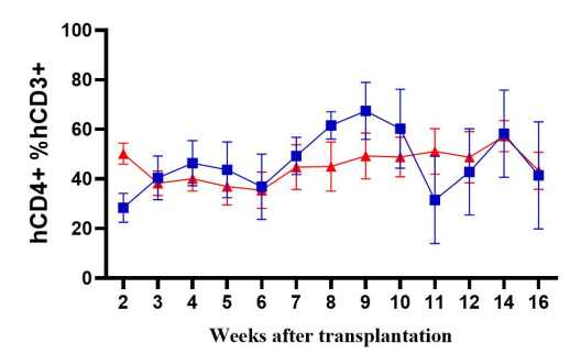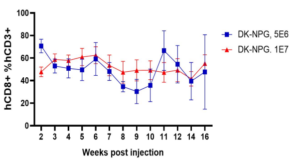 图3. DKO-NPG小鼠接种人PBMC后免疫细胞重建效率